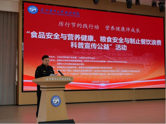 3月26日,以“厉行节约践步履,养分健康伴成长”为从题的食物平安取养分健康、粮食平安取餐饮华侈科普宣传公益勾当正在昆明医科大学海源学院举行。